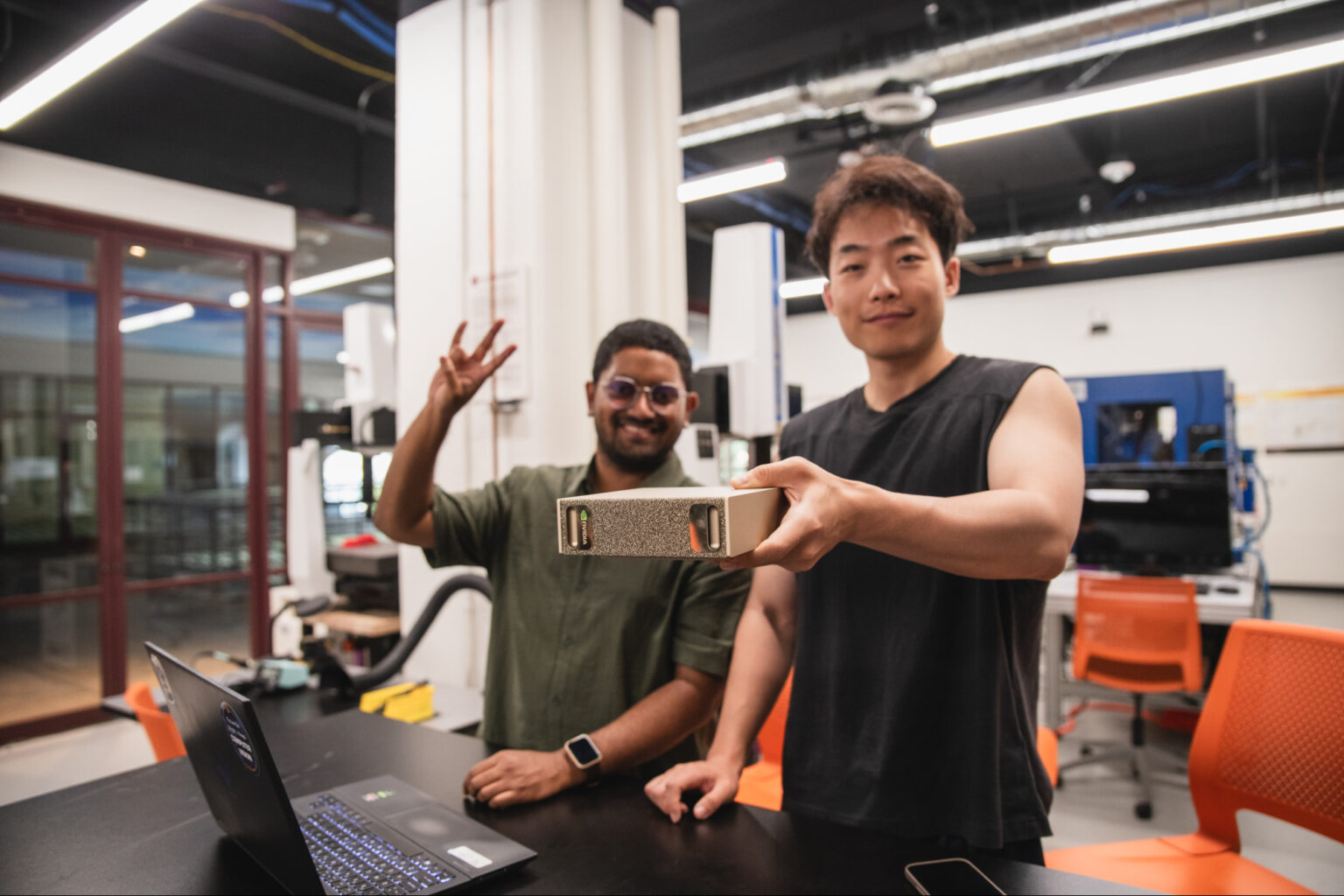 图注:亚利桑那州立大学的博士生手持 NVIDIA DGX Spark。两名学生均来自 YZ Yang 教授的 Active Perception Group 实验室。图片由亚利桑那州立大学的 Alisha Mendez提供。