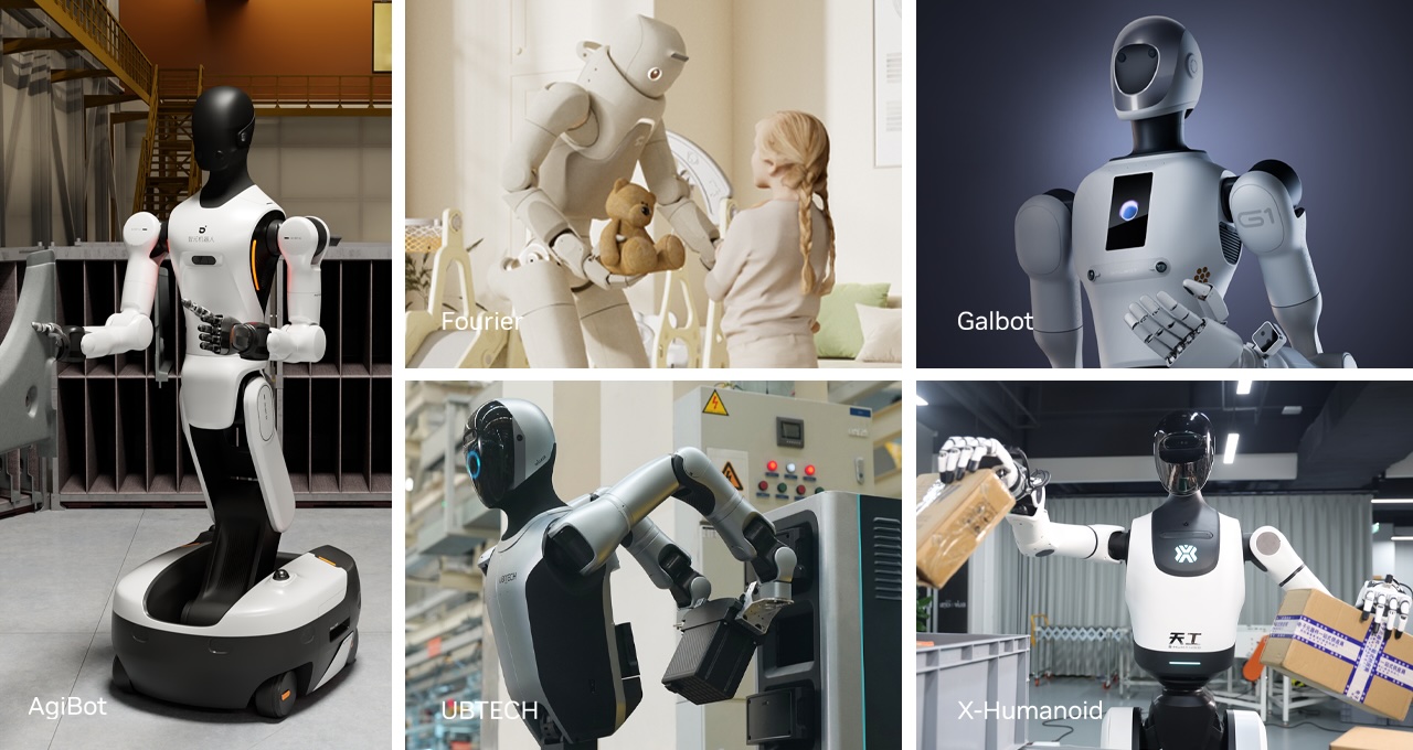 中国 AI 与机器人领域的领先企业阿里云、北京人形机器人创新中心、傅利叶、加速进化、优必选、银河通用、宇树科技以及智元机器人,共同推动中国在人形机器人和 AI 解决方案方面的发展。